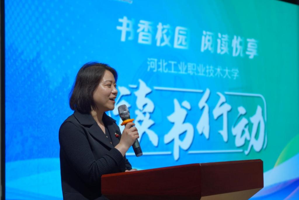 付俊薇在启动仪式上致辞。她表示本次读书行动,是贯彻落实党的二十大精神和习近平总书记关于教育工作重要指示精神的实际行动,通过开展持续不断的读书活动,激励全校师生爱读书、读好书、善读书,让大家真正把读书当成一种生活态度、一种成长方式、一种精神追求。并与现场师生分享了三点感悟,一是勉励师生从阅读中感悟到更广阔的天地,从更多维度、更长周期准确把握世界。二是阅读是源源不断丰富知识的途径。希望每一位同学都能自觉、积极、主动的参与阅读。三是要珍惜当下的学习环境,多读书、读好书、善读书,不断进步、不断成长!