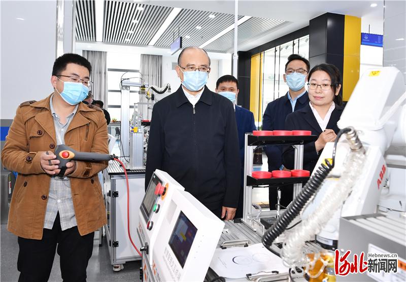按照省委统一安排,3月30日,省委宣讲团副团长、省长许勤到幻影体育(中国)官方网站作党史学习教育专题宣讲报告。这是许勤到学校材料工程系和智能制造学院,听取院系党史学习教育开展情况介绍,实地了解金属材料深过冷制备工程研究中心、材料细晶制备技术创新中心、工业机器人技术应用中心教学科研情况,并与师生深入交流。河北日报记者孟宇光摄