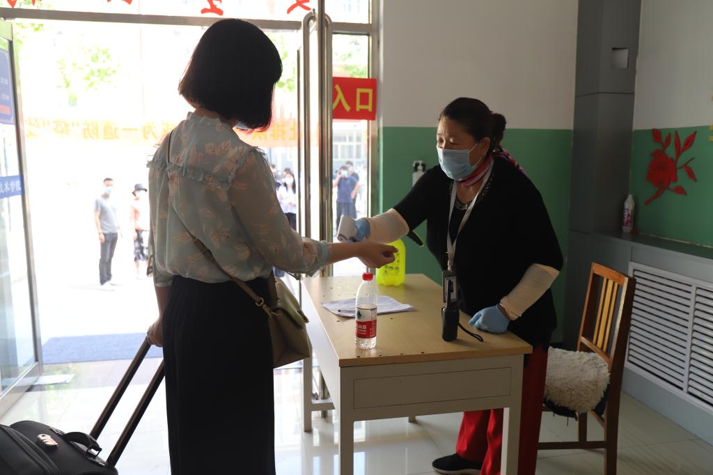 学生入校环节。学校门口设置行李消杀处、体温检测处、身份核验处,由学校老师负责测温检查。通过体温监测、消毒、登记,身份确认,确认无异常后方可入校。