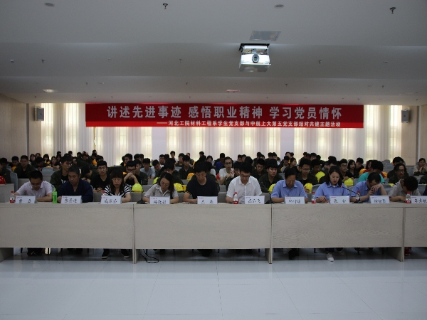 活动中,中航上大高温合金材料有限公司第五党支部的三名优秀党员代表分别从不同角度讲述了自己在企业的成长过程和奋斗经历,以生动鲜活的案例展示了他们扎根上大热土、立足基层一线、实现自身价值的突出事迹,向在场同学们诠释了“在平凡岗位上争做不平凡业绩”的职业精神和追求,抒发了共产党员的奉献情怀。我院学生党员代表和入党积极分子代表在发言中谈及了自己在党组织教育培养过程中思想上的转变与提升,以及在实际行动中如何向党组织靠拢、如何发挥模范带头作用等内容,并表达了今后要向企业优秀共产党员多学习,学习他们爱岗敬业、崇尚职业、热衷事业的高尚精神。材料工程系党总支负责人在讲话中指出,开展“讲述先进事迹、感悟职业精神、学习党员情怀”结对共建主题活动,旨在通过以企业优秀党员的先进事迹感染在校学生,引导进步青年和在校大学生端正入党动机,树立崇高信念和远大理想,增强服务奉献意识和责任担当精神,以至将来成为对社会有用的人才。