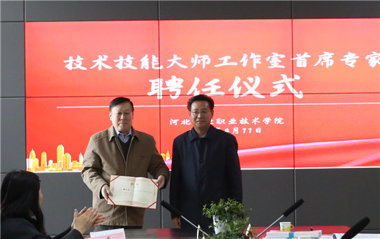会上,学院院长贾俊礼首先对各位专家、领导表示了热烈欢迎,他对课题组成员付出的努力表示了赞许,同时就本次课题的重要性表示了肯定。会上,贾俊礼院长为“河北工业职业技术学院技术技能大师工作室”特聘首席专家郑文华教授、温燕明教授、王爱臣会长、王洪华高工、程鹏高工颁发了聘书。