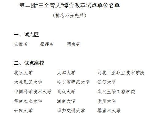 我院入选全国第二批“三全育人”综合改革试点单位