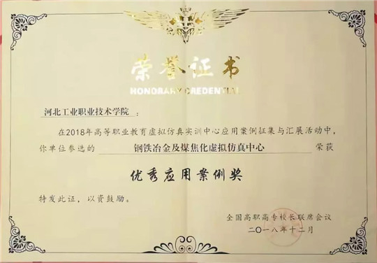 会议表彰了高等职业院校服务贡献50强、国际影响力50强、教学资源50强、全国职业教育虚拟仿真应用优秀案例等,学院院长贾俊礼代表我院分别参加了高等职业院校“服务贡献50强”、高等职业院校“教学资源50强”授牌仪式。为促进虚拟仿真技术在高等职业教育实训教学中的开发与应用,推广各省高职院校和企业优秀虚拟仿真实训方案与应用模式,校联会组织了“2018年高等职业教育虚拟仿真实训中心应用案例征集与汇展活动”。我院荣获全国职业教育虚拟仿真应用优秀案例。