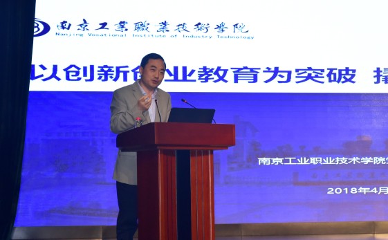 ▲南京工业职业技术学院党委书记吴学敏以《以创新创业教育为突破 撬动人才培养全面改革》为题