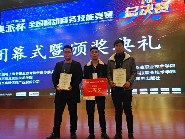 12月2日,由全国电子商务职业教育教学指导委员会主办的第二届“奥派杯”全国移动商务技能竞赛全国总决赛在江苏省南京市举办。我院派出由李京京、康星宇两位指导老师以及2016级电子商务专业齐晓彤、魏宁、许海东3位学生组成的代表队,代表京津冀赛区参加全国总决赛,与全国23个赛区446所院校1256支参赛队展开激烈角逐。最终,我院代表队荣获高职组三等奖,作为京津冀地区唯一获奖院校,我院荣获优秀组织奖。