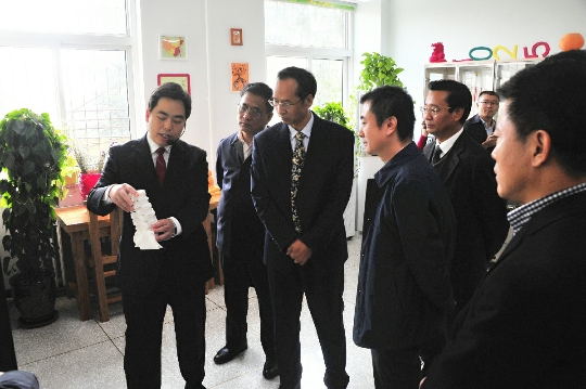 专家组实地考察了学院育米众创空间、3D打印中心、创客咖啡、福特汽车基地、通用汽车基地、BIM虚拟仿真中心等实训基地以及老年教育学院、冶金职业教育信息化研发培训中心、烙画内画大师工作室、学生食堂、宿舍等校园教育教学环境。
