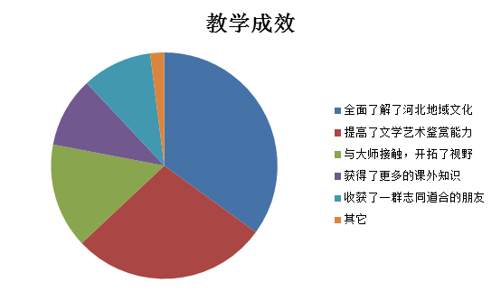 “工院论坛”自2014年3月起举办第一期文化素质讲座以来,将中华传统文化资源融入高校文化素质教育,让传统文化真正在校园扎根。截至目前,共开设讲坛活动83期,近5万人次走进论坛现场,通过制度建设,彰显人文精神制度文化;围绕地方文化、红色文化、道德文化、励志文化四大主题,实现文化育人全覆盖;突出学生主体,形成文化育人实践体系,在校园内逐渐形成书香浸润,大师引导,文化素质提升的文化氛围。通过课后问卷调查发现,学生对“工院论坛”课程满意度较高,对课程非常满意的占总数的50.8%,对课程比较满意的占总数的25.3%。在课程内容设置方面,对课程内容设置非常满意的占总数的70%,比较满意的占20.5%。在教学成效方面,35%的学生表示最大的收获是全面了解了河北地域文化,28%的学生认为参加工院论坛讲座,提高了文学艺术鉴赏能力,15%的学生认为与国家级、省级大师接触,开拓了自身视野,10%的学生表明工院论坛让他们获得了更多的课外知识,10%的学生表示通过参与工院论坛实践活动,拓展了交友面,收获了一群志同道合的朋友。