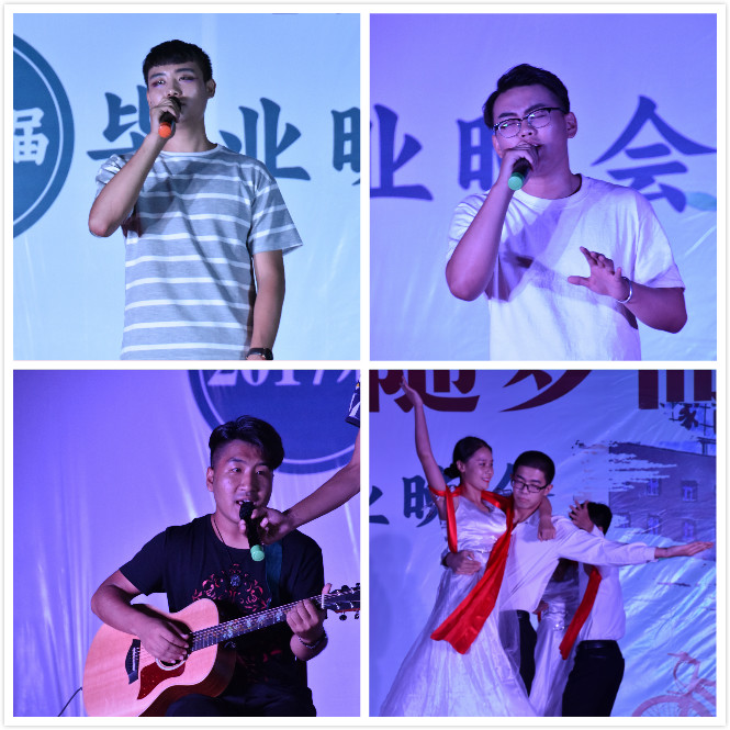 曙光乐队的一曲《春风十里》拉开了本次晚会的帷幕。《小幸运》《不说再见》《李雷与韩梅梅》《毕业后你不是我的》《告白气球》等大家耳熟能详的歌曲,唱出了青春的态度和工院人特有的活力。 SPO社团的《菁菁校园》节奏明快、韵律优美,让大家感受到了不一样的工院校园。经贸系的舞蹈《青春如火》,盈盈身姿舞态婀娜,舞动的水袖极富韵律感和造型感。环化系的民族舞表演《红色英雄》场面宏大、舞姿优美,带给大家震撼的体验;校园情景剧《兄弟》,创意的表现形式引发了大家的共鸣。Moment Crew 街舞社的《time back》极具现代感的舞姿、酷炫的服装、带感的节奏,点燃了现场观众的热情。台上表演炫目、投入,台下观众激动、疯狂,在一次次的合唱与欢呼声中,现场气氛也一次次地被推上高潮。最后,来自流行音乐协会的歌手们演唱了工院版《成都》,深情的演绎表达了对“最美工院”的留恋与不舍。晚会在老师和同学们的祝福与期待、毕业生的留恋与不舍中圆满结束。