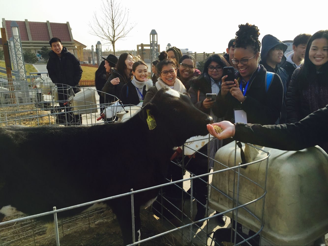 与奶牛近距离接触