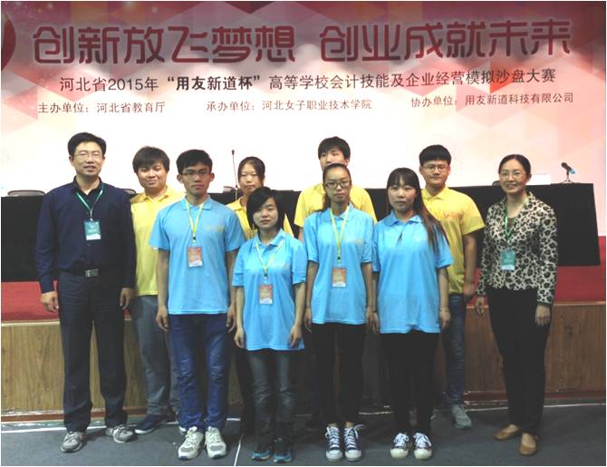 2015年5月8日至9日,我院会计专业学生参加了河北省2015年“用友新道杯”高等学校会计技能及企业经营模拟沙盘大赛,两支代表队双双荣获河北省团体三等奖,在教师组比赛中,伊静老师荣获二等奖。