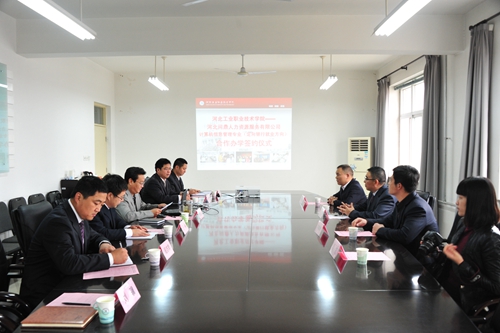 本次合作是我院计算机技术系继与河北新龙科技集团、河北华网智集团、用友集团订单培养、共建专业以来,迎来第4个合作伙伴。河北问鼎人力资源服务有限公司是河北省最大的银行系统服务外包提供商。这是计算机技术系现代学徒制人才培养的一次尝试,将与该公司共建计算机信息管理专业,展开精诚合作。