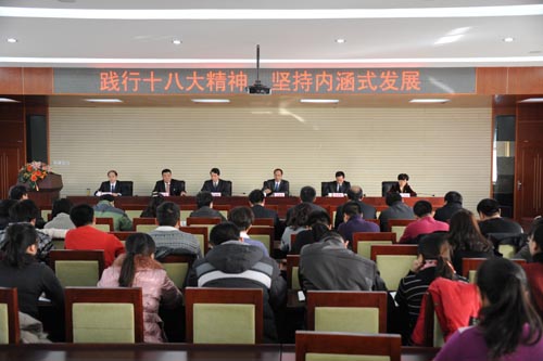 11月28日下午,我院召开会议学习宣传贯彻党的十八大精神。王振杰书记作了题为“践行十八大精神·坚持内涵式发展”的主题报告。王建刚副书记、李军锁副院长、付俊薇副院长、纪委书记赵瑞生出席会议。会议由王世龙副院长主持。各党总支和直属党支部书记、副书记,学生处、团委负责人,全体辅导员,政体部负责人、政治教研室全体老师参加会议。