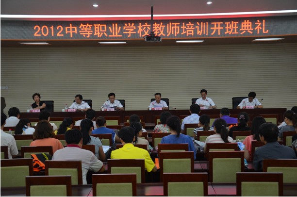 7月9日下午,河北省2012年中等职业学校专业教师培训班开班典礼在我院南校区办公楼五楼报告厅隆重举行。教育厅职成处石建平处长出席会议并作专题报告。学院贾俊礼院长出席会议并致辞。典礼由学院李军锁副院长主持。学院相关系部负责人与来自省内各地的60名中等职业学校的专业骨干教师出席了开班典礼。