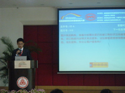 5月20日至21日,由中国汽车工程学会主办的2010年“比亚迪杯”全国高职院校汽车营销技能大赛在深圳职业技术学院举行。我院机电工程系学生孙超、陈非凡从来自全国的63个大学生代表队中脱颖而出,喜获三等奖,同时汽车技术服务与营销教研室主任、指导老师朱晓红、团总支书记李小红两位老师获得“优秀指导教师”称号。