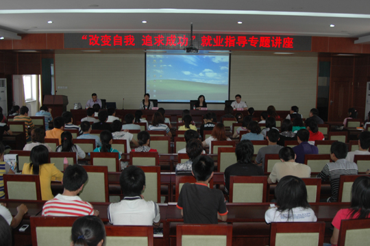 5月18日下午,我院在南院五楼报告厅举行了第三届就业服务月系列活动之——职业生涯与就业指导系列讲座。本次讲座特邀请了 “众和育仁”中等专业学校董事长张慧玲老师,我院招生与就业指导中心和各系相关相关负责人、教师及全院150余名学生听取了报告。