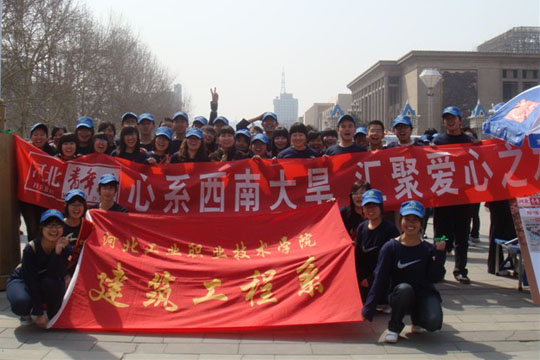 “只要一块钱,您就为西南抗旱奉献出自己的一份力量和爱心”,我院学子张坤良同学手持捐款箱在省博物馆附近正向过路的行人宣传抗旱街头募捐活动。百年不遇的西南旱情牵动着每一位国人的心,为支援灾区,帮灾区群众渡过难关,我院建筑工程系积极联合河北青年报社,4月3日,70余学子走上街头参与“心系西南旱情,汇聚爱心之水——抗旱募捐活动”。