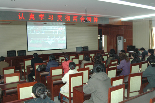 十一届全国人大三次会议今天在北京隆重开幕,国务院总理温家宝在会上作政府工作报告。上午9时,我院在五楼报告厅组织教师收看了现场直播盛况。