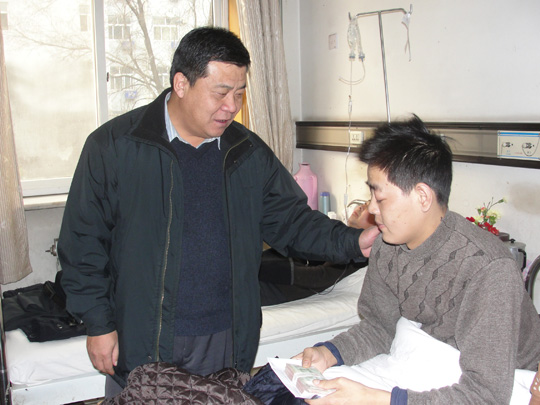 12月16日,河北工业职业技术学院王世龙副院长在学工部、建筑工程系负责人的陪同下,专程来到省中医院,亲切看望身患尿毒症的我院05届建筑工程专业毕业生习海立同学。看到习海立,王世龙副院长动情地说:“你是河北工院的学生,无论何时,工院的老师同学们都与你是一家人,都是你坚强的后盾”。当他将凝聚着母校师生浓浓爱意的18392.26元捐款送到习海立母亲手中时,这患难中的一家人几度哽咽说不出话来,激动不已的母亲不断地重复说着:“是工院给了我儿子第二次生命……。”