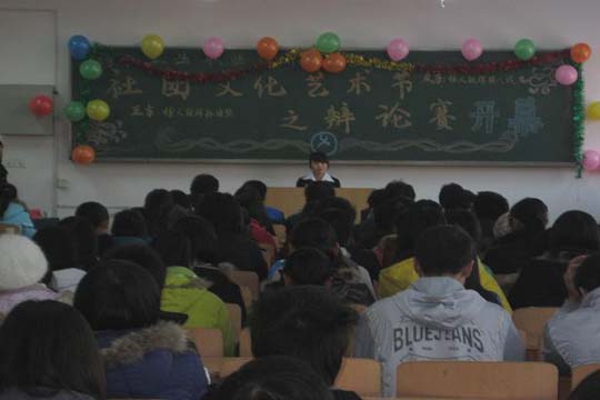 11月17日下午,随着辩论比赛的开始,我院第二届社团文化节拉开了序幕。 本届社团文化节以“缤纷社团·和谐校园”为主题,历时一个月,从学术、体育运动、文艺、志愿行动、专业技能、兴趣爱好六个方面,开展古文学朗诵与赏析、现代舞比赛、网页设计大赛、摄影比赛、羽毛球比赛等一系列丰富多彩的活动。本次文化节将对社团凝聚广大学生、促进社团的规范健康发展、打造特色社团品牌起到很大的促进作用,同时也将推动我院校园文化建设,全面提高大学生综合素质。 我院现有社团118个,其中院级社团19个,每年参加社团活动的学生近万人