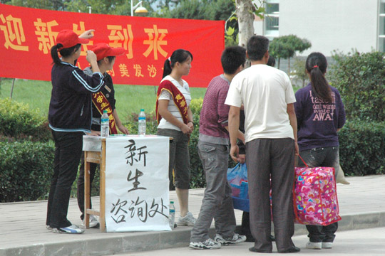 迎新工作以学生为本,服务热情周到,让新生满意,让家长放心: “绿色通道”的开通使新生报到更加即时、方便,新生家长临时休息室的人性化服务设置让他们感到更加温馨体贴,迎新志愿者帮助拎行李、解答疑难问题,积极为新生家长提供热情周到得服务,到处彰显了一切从学生及家长的实际需要出发。