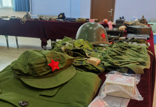 在活动现场,展台上整齐地陈列了照片、报刊、衣物、粮食、武器等多种形式的红色历史文物,涵盖了抗日战争时期、解放战争时期、抗美援朝时期、对越自卫反击战时期等不同历史时期的共计120余件历史文物。活动中,解说员深情地解说着每一件文物的来历、背后的感人故事和催人奋进的英雄事迹。一帧帧照片,一幕幕场景,一件件文物,再现了人民英雄英勇抗击敌人、誓死保卫家园的英雄气概和家国情怀。学生们悉心聆听,用心感受,从红色文物和英烈故事中重温革命发展历史,汲取先进力量,从而厚植爱国爱党情怀,树立远大理想,激励奋斗前进。