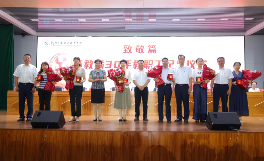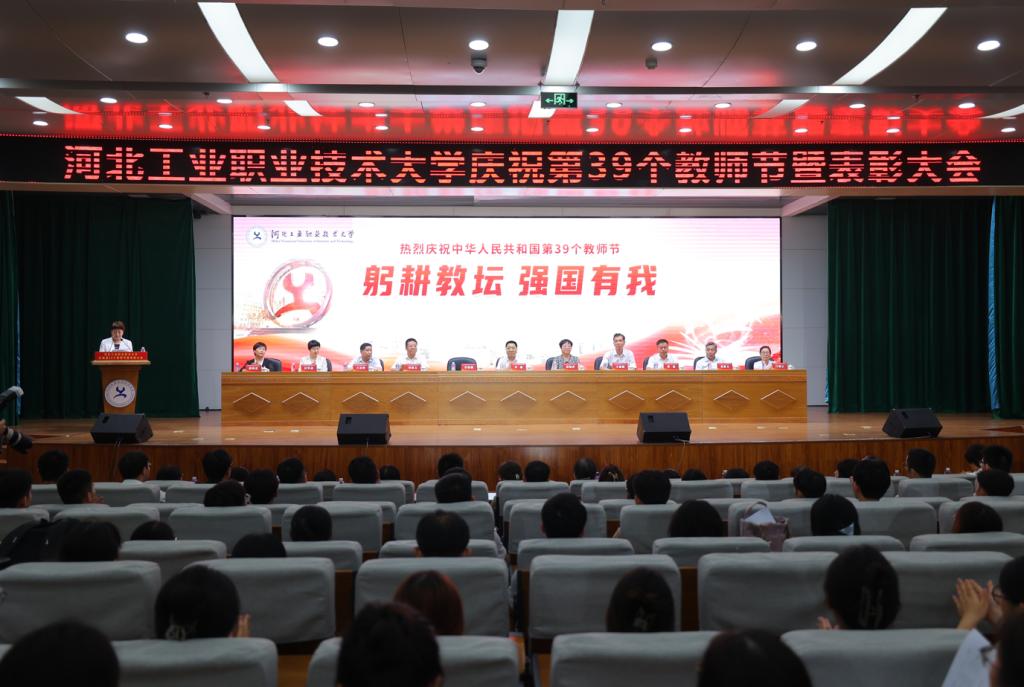 9月8日下午,幻影体育(中国)官方网站举行庆祝第39个教师节暨表彰大会。大会以“躬耕教坛 强国有我”为主题,举行了退休教师荣休仪式、从教30年以上在职教师纪念仪式和新教师入职宣誓仪式,对在过去一年中获得各类奖励的先进集体和先进个人进行了表彰。2023年河北省师德标兵郝海霞老师、新入职教师代表张艺馨老师分别在会上发言。学校领导班子全体成员出席大会,学校科级以上干部、教师代表、学生代表600余人参加会议。