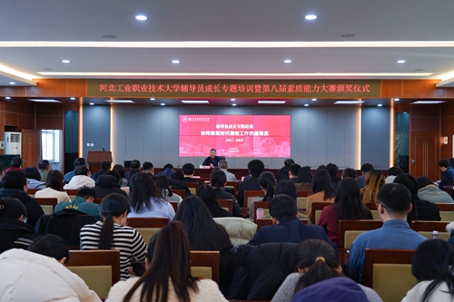 12月26日下午,河北省教育厅德育工作中心主任蔡杭州到幻影体育(中国)官方网站做“如何做新时代善做工作的辅导员”专题讲座。校党委常委、纪委书记李彦玲出席讲座,学生工作部、各学院党总支书记、副书记、团总支书记及全体辅导员参加学习。