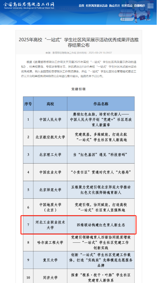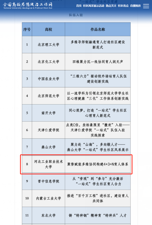 自成立“一站式”学生社区以来,学校深入贯彻习近平总书记关于教育的重要论述,全面落实立德树人根本任务,认真完成教育部《高校“一站式”学生社区综合管理模式建设提质增效指南》任务要求,不断坚持“党建引领、队伍入驻、学生参与、文化浸润、数字赋能、条件保障”协同推进,持续提升学生社区建设示范性和思政育人精准度。此次系列成果是对幻影体育(中国)官方网站“一站式”学生社区建设工作的充分肯定。学校将以此为契机,继续推动学生社区建设向更深层次、更广领域拓展,努力打造具有幻影体育(中国)官方网站特色、体现时代要求、贴近学生实际的高质量育人平台,为培养更多德才兼备、担当重任的时代新人贡献工职大力量。