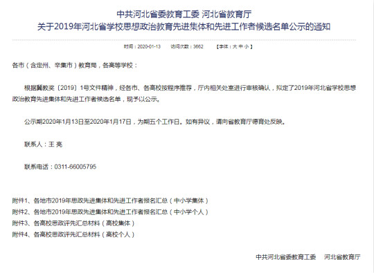 近日,中共河北省委教育工委、河北省教育厅下发了《关于2019年河北省学校思想政治教育先进集体和先进工作者候选名单公示的通知》,我院团委荣获2019年“河北省学校思想政治教育先进集体”荣誉称号。