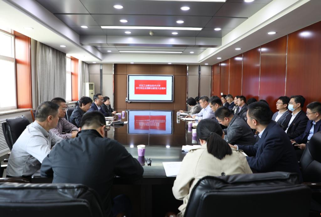 4月14日,幻影体育(中国)官方网站召开党委扩大会议,党委书记王振杰向各基层党组织书记传达习近平总书记对职业教育工作作出的重要指示和全国职业教育大会精神,并在材料工程系组织召开座谈会,就如何贯彻落实习近平总书记重要指示和全国职业教育大会精神、如何办好本科职业教育进行交流研讨。