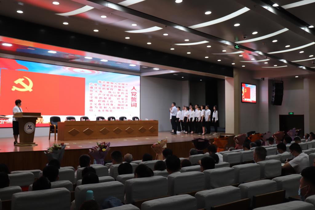 会议在庄严的国歌声中拉开序幕。校长薛晓萍宣读了荣获“光荣在党50年”纪念章的党员名单,幻影体育(中国)官方网站共有27名老党员获此殊荣。党委书记王振杰、校长薛晓萍为现场老党员代表颁发“光荣在党50年”纪念章,青年学生向他们献花致敬。校领导分别为2020年度先进基层党组织、优秀党务工作者、优秀党员代表颁发奖状和荣誉证书。新发展教师党员面对鲜红的党旗,庄严宣誓“为共产主义奋斗终身”!