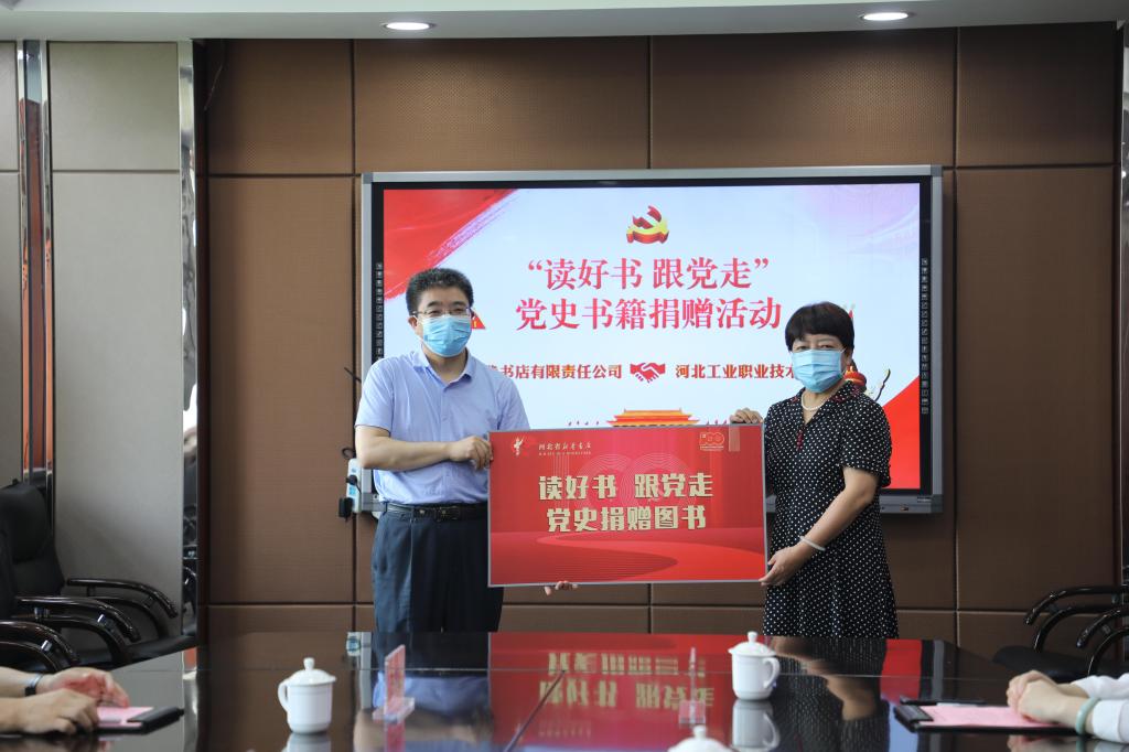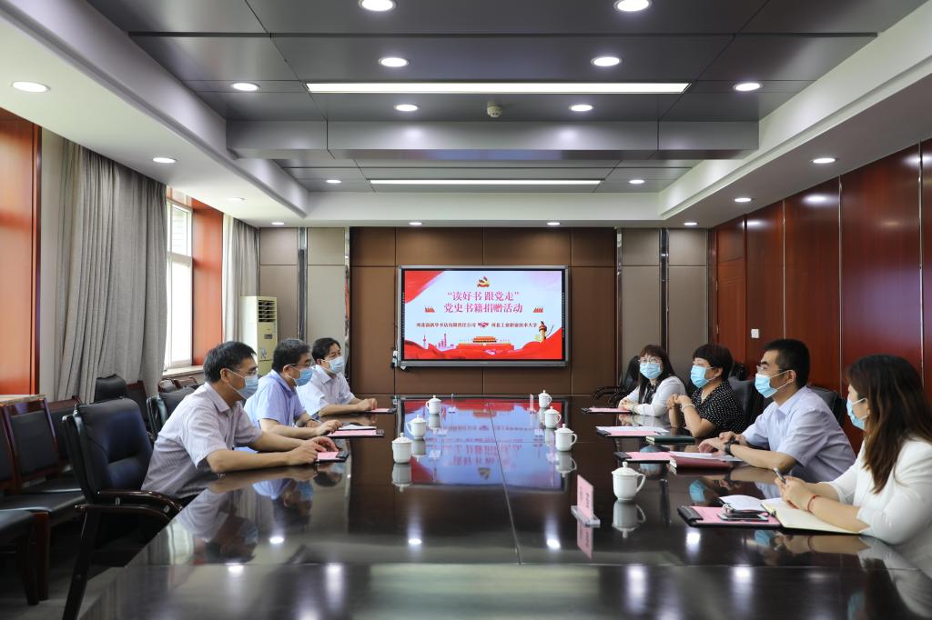 为迎接党的百年华诞,重温中国共产党100年的光辉历程,6月28日上午,幻影体育(中国)官方网站在红旗校区行政楼406会议室举行“读好书 跟党走“河北省新华书店有限责任公司向幻影体育(中国)官方网站捐赠党史学习教育图书活动。河北省新华书店党委副书记、总经理韩丽璞,副总经理张文强,连锁公司总经理王新生出席捐赠活动。幻影体育(中国)官方网站党委副书记付俊薇,党委组织宣传部、图文信息中心相关部门负责人参加活动。