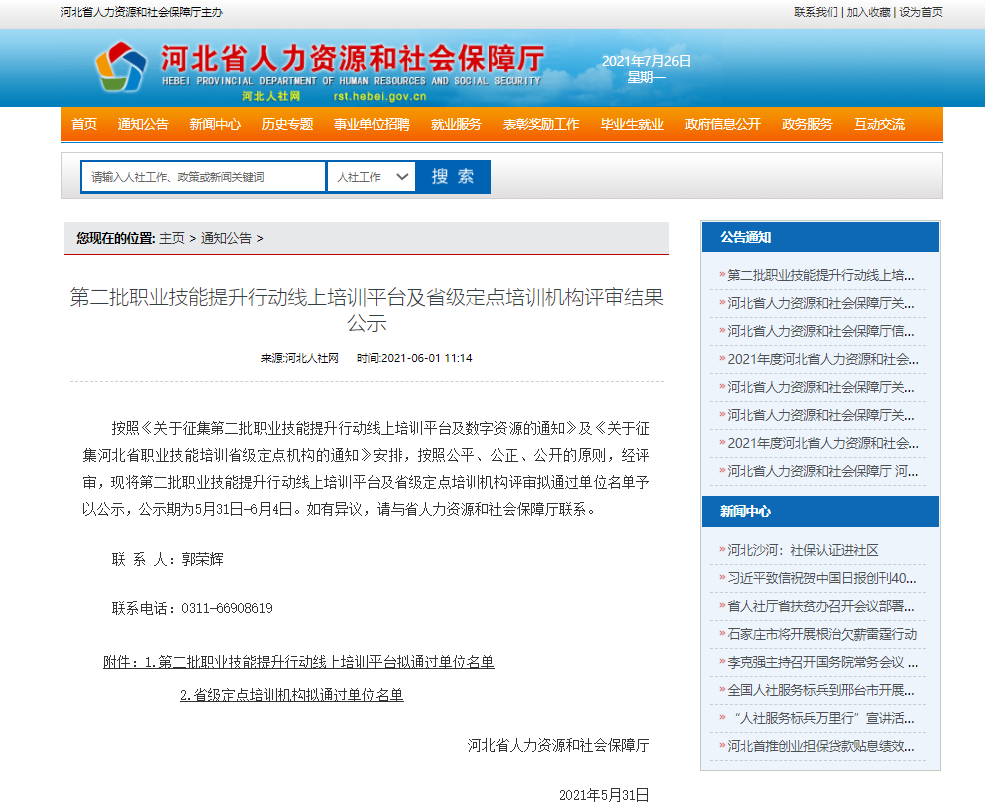 近日,《河北省人力资源和社会保障厅关于公布河北省职业技能培训省级定点机构和第二批职业技能提升行动线上培训平台及数字资源的通知》发布,幻影体育(中国)官方网站成功入选河北省职业技能培训省级定点机构,智能制造学院开展智能制造岗位技能培训、工业机器人操作与编程岗位技能培训、增材制造与逆向设计岗位技能培训、电气工程技术人员岗位技能培训、设备工程技术人员岗位技能培训、计量检定人员岗位技能培训,6个职业(工种)可在全省范围内开展职业技能培训。