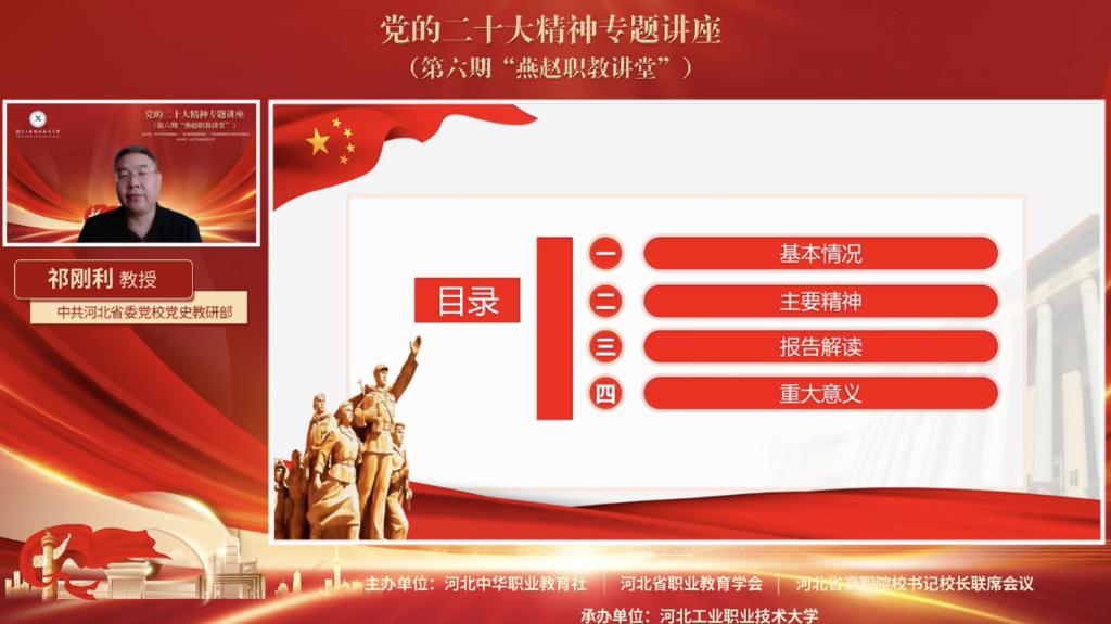 11月23日,幻影体育(中国)官方网站成功承办“学习宣传贯彻党的二十大精神专题讲座(第六期燕赵职教讲堂)”。
