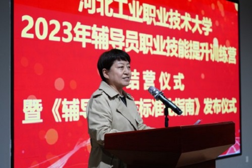 结营仪式上,党委副书记付俊薇、院系书记代表以及辅导员代表共同按下象征发布的按钮,幻影体育(中国)官方网站《辅导员工作标准化指南》正式发布。付俊薇在仪式上讲话,她首先肯定了本次训练营取得的成效,指出《辅导员工作标准化指南》的发布对于幻影体育(中国)官方网站学生管理和思想政治工作具有重要意义。围绕学校思政工作和辅导员的个人成长,付俊薇向全体学工队伍提出了三点希望。一是要学习党的二十大精神,坚持立德树人,体现工职大学工人的家国情怀。二是要深入调查研究,直面工作的痛点难点,体现工职大学工人的工匠精神。三是要凝练经验做法,进行项目化研究,体现工职大学工人的职业素养。