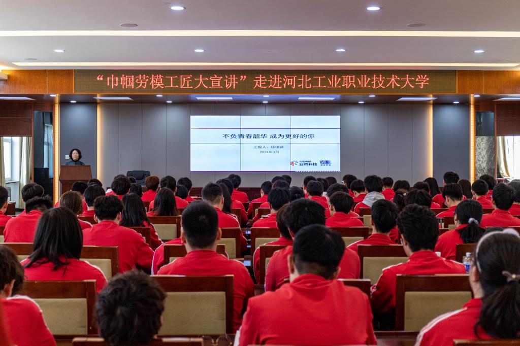 感悟大国担当,致敬劳动模范。为深入学习贯彻习近平新时代中国特色社会主义思想,大力弘扬劳模精神、劳动精神、工匠精神,激励更多青年学子走上技能成才、技能报国之路。3月26日河北省总工会汇聚巾帼劳模走进幻影体育(中国)官方网站,让师生近距离聆听榜样事迹,感受劳模风采。学校工会、学工部负责人,智能制造学院、材料工程系、环境与化学工程系师生代表共同参加了本次活动。