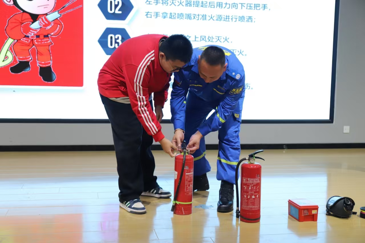 马克思主义学院贾海利老师,以“践行新时代‘枫桥经验’ 创新学生社区基层治理新格局”为题,从思想理念上引导网格员理解在社区践行“枫桥经验”的重要性和必要性;河北省大学生蓝天救援队队长李雷通过知识讲解、技能展示和体验互动,系统培训网格员消防安全、应急救援等能力;学生处学生社区管理服务中心、公寓管理中心、心理健康教育中心的负责老师,从网格员职责、社区文化建设、公寓管理制度、常见心理困扰识别与预防等方面进行讲解,帮助学生明方向、知责任、辨是非、化矛盾。培训过程中还安排了安全教育VR虚拟体验,258名网格员体验了仿真灭火、宿舍火灾脱险、地震模拟逃生等实操环节,通过寓教于乐的形式让学生学习更多安全技能。