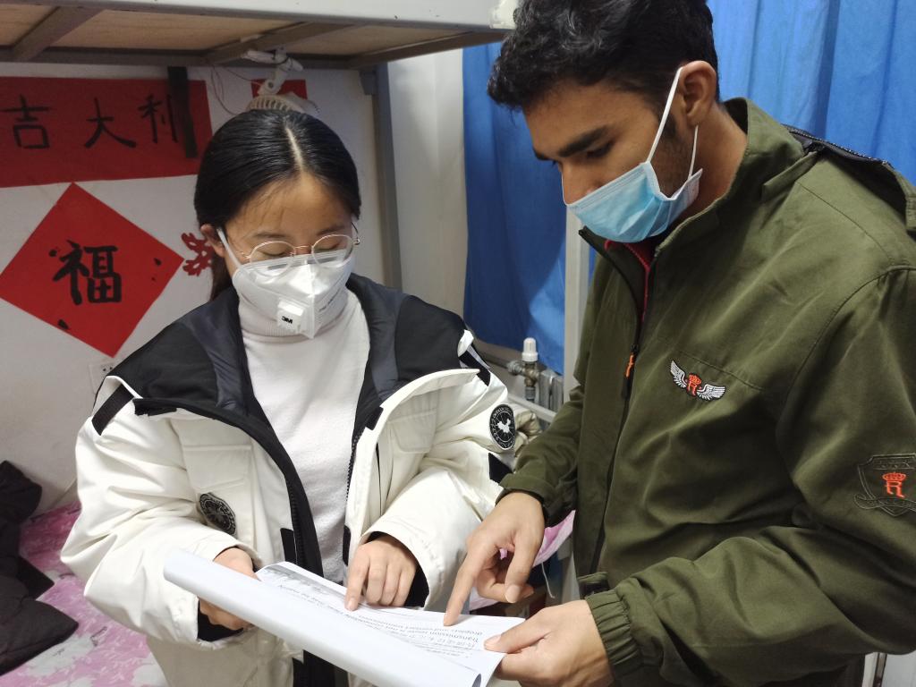 战“疫”打响之后,留学生辅导员始终奋战在一线,从日常信息摸排、疫情防控知识宣讲,到学习生活保障、心理关注疏导等方方面面,默默坚守、付出关爱。冯晗、霍丽聪二位辅导员老师的手机从不敢关闭,从疫情发生之后,他们就与学生们站在一起,成为了名副其实的守护者。