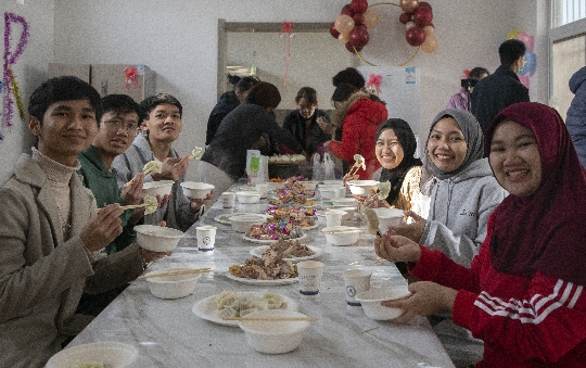 留学生们在老师们的耐心指导下,从擀皮到包馅,忙得不亦乐乎。随后,薛校长给在场的留学生介绍了我国冬至的习俗并致辞。她说:“冬至,是我国的传统习俗,这个节气既是对这一年的回味也是对下一年的鼓励。今年幻影体育(中国)官方网站取得了不俗的成绩,双高建设、学生技能大赛、教师能力大赛、科研工作各方面捷报频传。留学生也在“中国—东盟”的系列赛事中收获颇丰,这些荣誉和称号成为幻影体育(中国)官方网站国际化办学的一道亮丽的风景。”在一片祥和的气氛中,大家共同品尝了舌尖上的中国味道,来自不同国家的留学生都洋溢着由衷的欢笑,共同度过了一个有意义的节日。