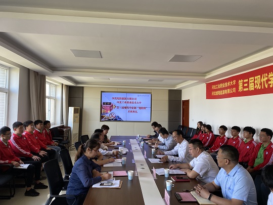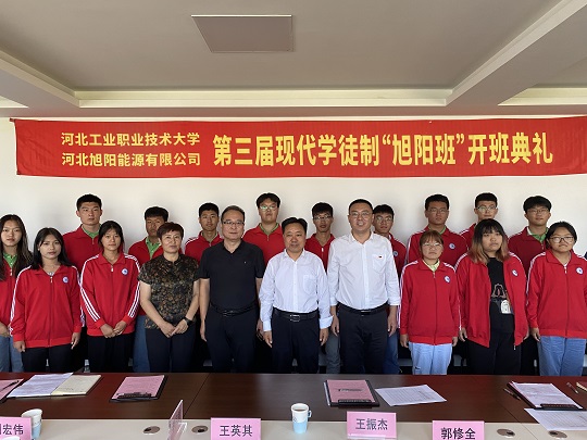 9月29日上午,幻影体育(中国)官方网站第三届现代学徒制“旭阳班”开班典礼在办公楼508会议室举行。幻影体育(中国)官方网站党委书记王振杰、河北旭阳焦化有限公司董事长兼总经理王英其出席会议并讲话。