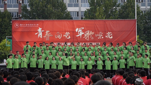 为激发青年学生的爱国热情,引导青年学生奋发进取、心有大我,努力成长为能够担当民族复兴大任的时代新人,学校于9月25日在红旗校区举办“青春向党 军歌嘹亮”2023级新生大合唱展演,学校党委副书记付俊薇、学工部负责人、各系(院)党总支书记、副书记、团总支书记、新生辅导员老师和2023级新生在场观看。