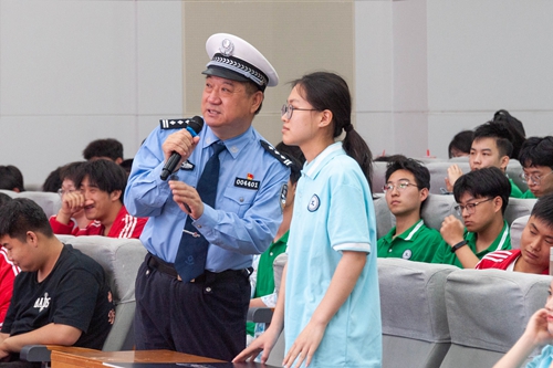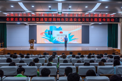 讲座邀请到石家庄市公安局交通管理局民警刘新利,以“马路课堂”为主题,结合自己多年的工作经验,向同学们讲解了交通安全的重要性以及常见的交通违法行为和后果。同时,他还为大家普及了交通安全标识常识、交通安全相关法规等常用知识,呼吁同学们自觉抵制不文明交通行为和交通陋习,切实加强交通安全意识和责任,争做文明交通的参与者和监督者。在互动环节,刘警官结合生活常见交通行为现场提问,针对学生们的回答一一做出精准评价,告诫学生要将交通知识内化于心、外化于行,严格遵守交通规则,共同守护生命安全。