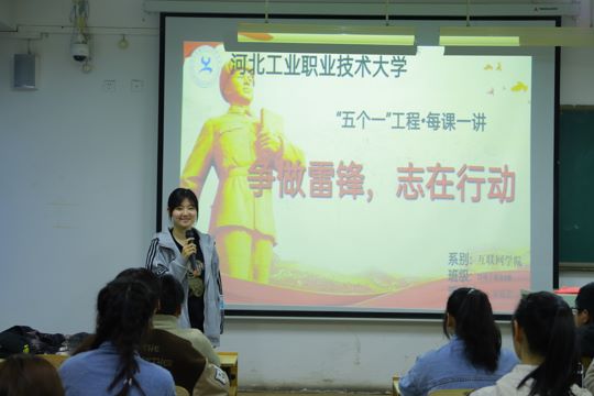 各班团支部、社团支部发起主题团日,共同研读雷锋书籍、开展雷锋精神大讨论,以“争做雷锋、志在行动”为主题进行“每课一讲”课前演讲。累计进行487场,近1000名同学参与演讲,分享身边榜样。