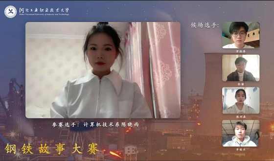 本次大赛通过线上直播分享的方式,有的同学带大家回顾中国钢铁行业从无到有,从弱到强的历史跨越,呈现我国钢铁行业发展史上一个个激动人心的瞬间,同学们一起在情景中读懂中国钢铁故事。有的同学讲述全国技术能手刘自力、“当代发明家”称号的女科技工作者于淑娟、“技能改变人生”罗东元等“钢铁人”攻关克难、引领创新、成长成才的生动故事,点燃同学们奋进的激情;有的同学结合自身在钢铁工厂学习实践的经历,与大家分享实践经验,感悟实践中的拼搏与奉献。最终评选出本次故事大赛一等奖2名、二等奖3名、三等奖5名。