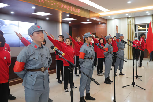 比赛由各系代表抽签决定出场顺序,依次进行音诗画表演。节目《听,这就是青年的声音》使我们仿佛听见那激越高昂的呼声穿越八十五年时光隧道正清晰响在耳边;《回望一二九 传承赤子心》让我们看到了即使身处危难困境依然选择振臂高呼的赤子之心;《那年那月,那一幕》为我们演绎了历史的影像,完美诠释青年团结一心争取胜利的报国之志。学生们坚定的振臂、有力的呐喊、卓绝的表演,慷慨激昂、热血沸腾,传达出的爱国热情感染了现场每一位观众。85年前,新华门的抗日怒吼震撼了古都北平,今天,学生们的坚定信仰展现出新时代的青年力量。