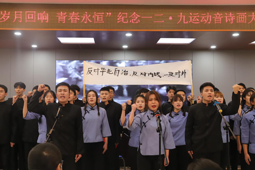 为纪念一二·九运动,激发广大学生的爱国热忱,弘扬爱国主义精神,12月9日,我院“岁月回响 青春永恒”纪念一二·九运动音诗画大赛隆重拉开帷幕,以此铭记历史,缅怀先烈。本次大赛由马克思主义学院副院长冀巧英、经济贸易系党总支书记臧胜利、学生处副处长李洪宾三位老师担任评委。