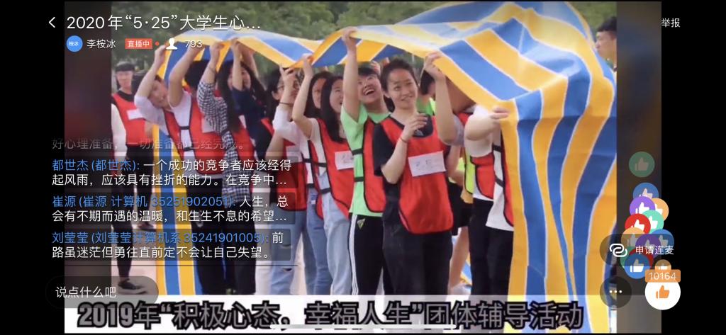 为充分发挥“心理育人”实效,加强疫情期间对学生的人文关怀和心理疏导,5月12日,我院2020年“5·25”大学生心理健康节线上开幕。本次心理健康节以“聚力同心,战‘疫’同行”为主题,学工部负责人,心理健康教育服务中心老师、各系心理工作负责老师、班级心理委员、学生代表等1000余人线上参与互动。