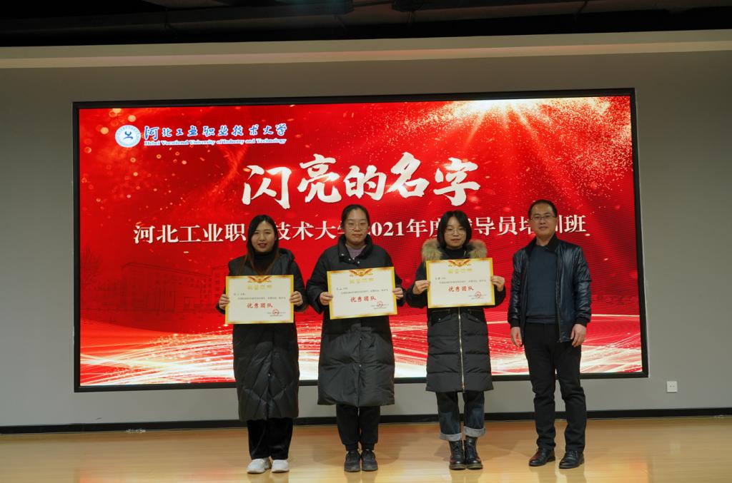 培训分觉知——辅导员职业能力提升、疏解——漫谈心理学在学生工作中的应用、凝聚——怎样提高班级向心力、卓越——“学霸”辅导员的精彩未来“四大模块”进行,邀请了石家庄学院姚振伟、河北中医学院边文静和姜萌、幻影体育(中国)官方网站马克思主义学院刘佳四位老师组成的河北省辅导员精英团队进行讲授。此外,还精心设计了团队破冰、心理解压、主题班会设计、辅导员年度人物孵化、精品项目打磨等实操研讨环节,通过专题教学、互动教学、体验教学等形式进一步增强职业理论素养,深化工作服务内涵。培训打破系(院)界限将参训老师划分为15个学习小组,在学习过程中,全体参训辅导员积极参与,在交流中加深沟通,在团队展示中凝聚超越。通过评委的打分点评和培训小结进一步拓展了工作思路。培训还注重以仪式教育,引导辅导员树立岗位情怀,增强育人责任感与使命感。校史馆、党建教育基地的参观学习,带领全体参训辅导员,学习党的百年光辉,感受学校历史底蕴。最终由互联网学院张思雨老师带领的第一组、由计算机技术系褚硕老师带领的第二组、由智能制造学院沈丽月老师带领的第四组荣获优秀团队。