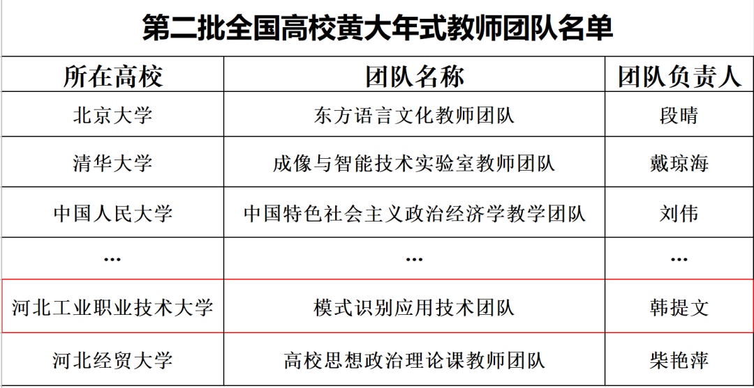 12月30日,教育部正式公示了第二批“全国高校黄大年式教师团队”认定结果,共有200所高校教师团队入选。其中,幻影体育(中国)官方网站韩提文教授带领的“模式识别应用技术团队”入选。幻影体育(中国)官方网站模式识别应用技术教师团队以黄大年同志为榜样,心有大我、至诚报国,教书育人、敢为人先,淡泊名利、甘于奉献,把爱国之情、报国之志融入祖国改革发展的伟大事业之中、融入人民创造历史的伟大奋斗之中,从自己做起,从本职岗位做起,为实现“两个一百年”奋斗目标、实现中华民族伟大复兴的中国梦贡献智慧和力量。