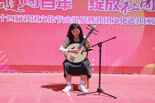 在第十四届社团文化节主题展演上,武术队表演的《武极拳韵》,精湛的剑术、棍术等展示赢得满堂喝彩,跆拳道社团表演的跆拳道花式动作一招一式炫酷十足,音遇626社团演唱的《最美的太阳》《江南》等歌声温暖人心,向阳花话剧团带来的小品《打劫》让人捧腹大笑,街舞社带来的街舞、爵士舞瞬间引爆全场,轮滑社表演的炫技轮滑让现场好评如潮,曲艺社的《龙灯》、茶艺社的茶艺表演,让小小的舞台满载“校园宝藏”,笛子、二胡、中阮、琵琶、笙等古典乐器齐声演奏,自由空灵的乐曲响彻春季校园。台上精彩连连,台下掌声雷动。同学们穿行在各个排列的展位之间集章打卡,互动交流,与广阔的热爱相遇,与飞扬的青春邂逅,流连忘返。